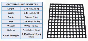 Physical details of the individual GEOTERRA® units used to form the top load-distribution/surface-wear layer: