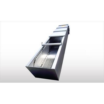 - Chain-driven rakes clean the bars, conveying at the same time the solids to the discharge point.