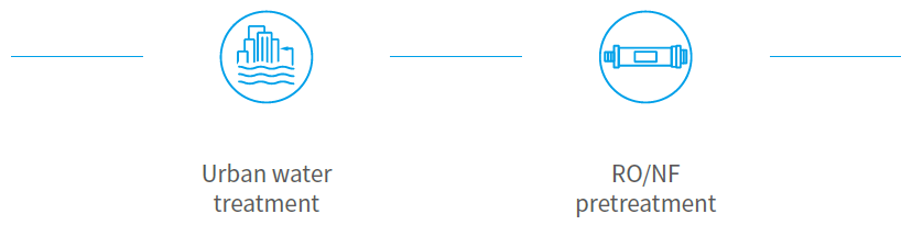 • Excellent effluent quality: Narrow membrane pore size distribution, high filtration precision, more than 6log of bacterial retention rate, more than 41og of virus retention rate;