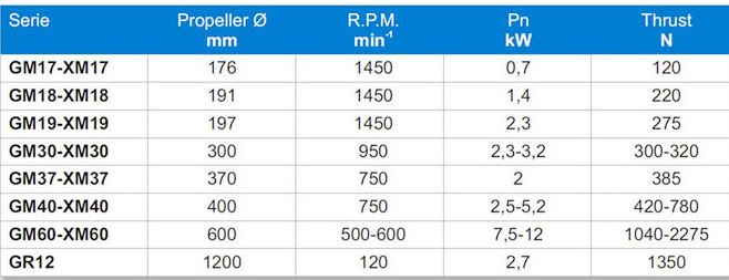 Serie GM: motor housing Cast iron EN-GJL-250; propeller Stainless steel AISI 316; electric cable Neoprene H07RN/F; shaft Stainless steel AISI 420; o-rings Nitrile; bolts A2 class; mechanical seal Silicon Carbide/Silicon Carbide.