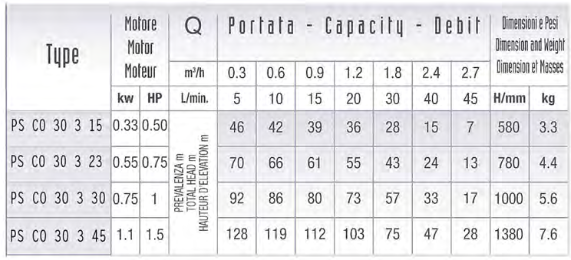 Submersible multistage centrifugal pumps for 3" wells, particularly suitable lor water rising and distribution installations.