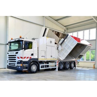 Filtration system Automatic self-cleaning system. Suction hose carrier POWER ARM. Suction hose D = 250mm. Remote control SPS Radio Remote Control. Chassis 4-axle on a TRIDEM (8×4)