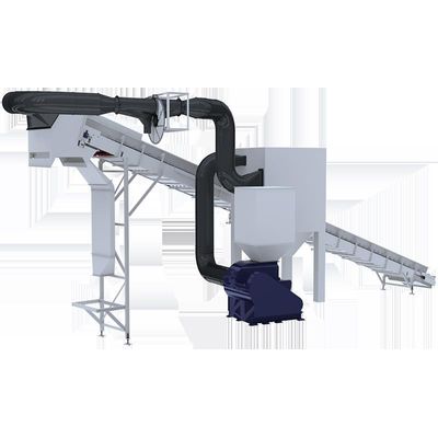 Hopper fitted with adjustable deflectors for the right air ducting, Adjustable blow nozzles, Alveolar valve for the suction film decantation and air separation, Sleeve felter for the dust elimination, Impulsion and suction fans, Galvanised steel pipelines transportation system. We also offer customised solutions for each project, searching for a great plastic film separation and low investment costs.