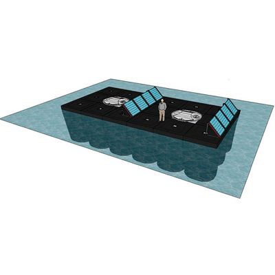 For full-scale field testing, Clearwater Layline developed a series of floating bioreactor modules, each one a drumlike 4000-gallon containment vessel. Linked in rafts of eight around a central settling tank, the submerged modules would host sulfate-reducing bacteria (SRB) that would attach to recycled fibers (each module’s fibers offering 100,000 square meters of surface area). Solar-powered pumps would keep water moving through each module, and controlled nutrients for the bacteria would be added through an inlet port. Through an outlet port, the sulfate-reduced water would flow to the central settling tank.