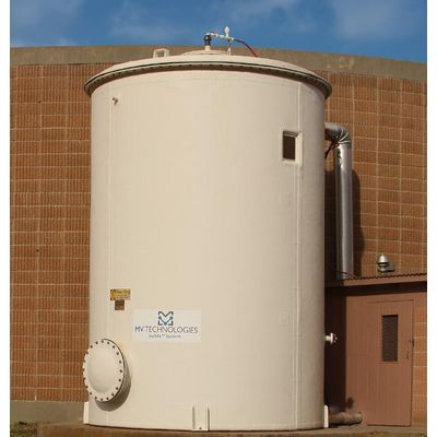 The granular media is installed in fiber-reinforced plastic (FRP), stainless steel or carbon vessels through a manway. Gas flows through the vessel (top down) and the iron oxide reacts with and eliminates the H2S and light mercaptans from the gas.