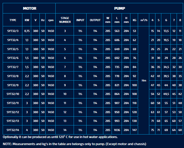 SumakModel SYT32 -Horizontal Shaft Multi Stage Pumps