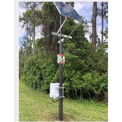 We also have kits that provide the power unit or video back hauling up to 20 miles line-of-sight. This exclusive surveillance power kit features a high resolution 6mp line camera with a digital zoom lens, water proof wireless transmitter, solar panels that provide power 24/7 for 4 days, plus an enclosed battery housing. This battery housing allows you to mount your camera, but should you choose to mount it on a pole for a higher perspective, we provide poles ranging in height from 10 to 30 feet.