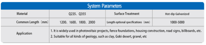 The ground screw is formed by welding blades after steel pipe forming. Different blades can increase the different bearing capacity and drawing capacity of the ground pile. The shape of the blades (single blade, double blade, multi blade, etc.) can be selected according to the terrain and land characteristics. The ground screw construction is simple, does not pollute the environment, has no vibration and soil dumping during the pile driving process, has low noise and long service life, and can be used repeatedly. Screw pile can also increase the compactness of soil around the pile, and increase the resistance and bearing capacity. It is widely used in photovoltaic projects, fence foundations, housing construction, road signs, billboards, etc.