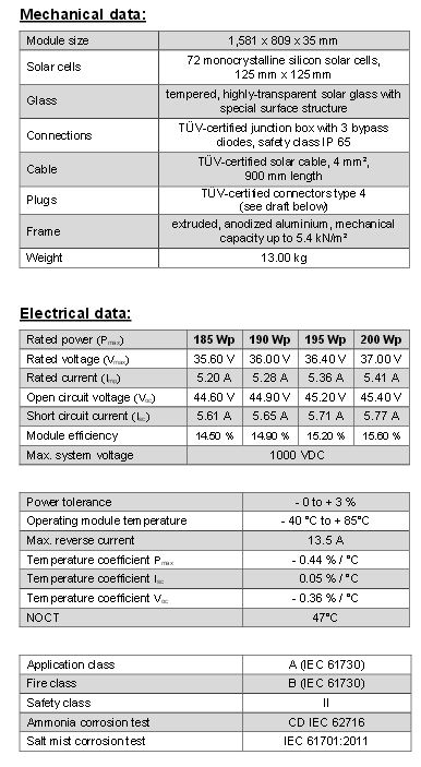 SUN VALUEModel SV - 185 /190 /195 / 200 MI-T -High-Performance Monocrystalline Modules