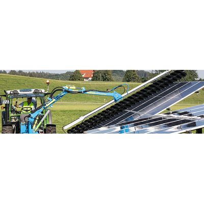 The unique SunBrush Mobile TrackFlex solar cleaning system enables the thorough (and simultaneously effective) cleaning of solar systems, regardless of the orientation and tilt angle of the solar modules. Quickly and easily mounted on standard tractors, the TrackFlex is ready for use within minutes. The flexible brushes can be conveniently controlled with a joystick. This means that so-called solar tracker systems can also be mechanically cleaned without any issue. Thanks to its innovative technology and special cleaning agents, there is no damage to the solar modules whatsoever. Solar cleaning with the SunBrush Mobile TrackFlex solution reduces yield loss, extends the service life of the solar system and does so with maximum efficiency and minimum effort – and all this without the need for empty runs.