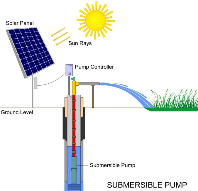 Conventional AC-powered pumps require large amounts of power to move large volumes of water in a short period of time. Solar pumps typically move a smaller volume of water over an extended period of time. This method requires far less power, which minimizes the size and cost of the PV array.