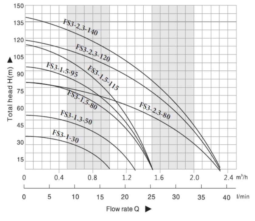 These electric pumps series are workable within maximum head, as there are no restrictions of BDC. With the addition of high head, high efficiency and wide high efficiency zone, they are suitable for distance water irrigation, high efficiency of increasing oxygen on aquaculture, pumping water from deep well, gardening, fountain and etc.