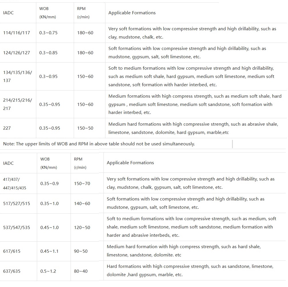 - WOB(KN/MM): 0.70~1.20