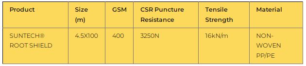 - SUNTECH® ROOT SHIELD has high tensile strength, high puncture resistance and is capable of withstanding the differential forces that can develop in clay soils.