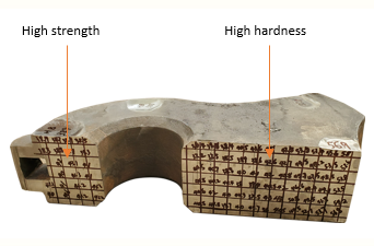 Metal shredders are machines widely used in scrap yards or metal recycling plants to shred the metal scraps into smaller shapes and sizes. It mainly consists of shredder housing, rotor and hammers. As the feed is metal or steel objects, the hammers have to withstand extremely harsh scratch and also impact force from the scraps. The hammer must have good strength at the handle area to provide good impact resistance for hammer, and in the mean time good wear resistance is required at the wear areas.