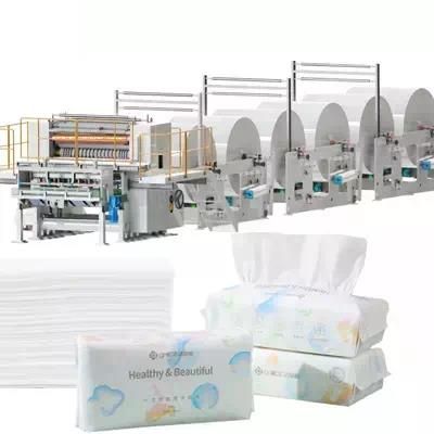 "V" type folding machine: The equipment cuts jumbo rolls of non-woven fabrics and folds them into pieces to facilitate the next process. An automatic cotton tissue making machine is a specialized piece of equipment designed to produce cotton tissues or cotton pads. These machines are commonly used in industries such as cosmetics, skincare, and medical fields.