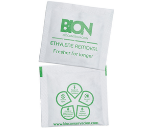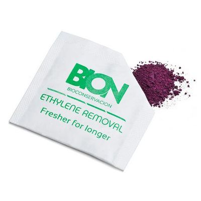 Controls ethylene and VOC`s in climacteric fruits. Increases shelf life of fruits and vegetables by removing ethylene and other volatile compound gases (VOC`s) such as ethanol and acetaldehyde. Adsorbs ethylene in modified atmosphere packaging or polyethylene bags. It is suitable for air transport or with limited air ventilation. It slows down the ripening and aging process of climacteric fruit. Ethyl Stopper is safe and suitable for organically grown produce. Safeguards nutrients, aroma, color, vitamins and protects from dehydration. It eliminates unpleasant odors. Ethyl Stopper provides permanent protection from exporter to final destination.