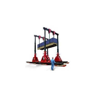Our Hydrospex SBL 1100 Super Boom Lift is the state of the art in hydraulic gantries. This three stage, fully hydraulic gantry is designed to meet the highest standards in quality, safety and precision control to ensure optimum stability during lifting operations. It is a versatile and compact addition to TNT` ’s existing Gantry inventory. The SBL 1100 has an incredible lifting capacity of 1220 U.S. tons, a maximum lifting height of 40`, and 200’ of tracking capability It is computer controlled for safe operation The Intellilift Control System is a remote controlled operating system with automatic synchronization and overload detection for the ultimate in safe operation.