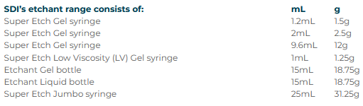 Super Etch offers an easy to use, leak free syringe. Direct extrusion facilitates faster procedures, economical dispensing and easier access into difficult to reach areas.