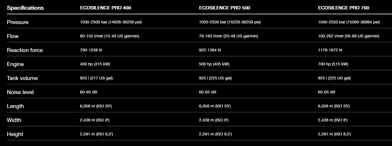 Ecosilence 3.0 PRO has a specially developed exhaust silencer, designed to eliminate low frequency engine sound. It also has a proportional inlet valve that creates a constant and controlled water flow as well as a reduced size to a standard 20 foot container. The motor and pump are built as a simple cord mounted system with a liquid-to-air cooling system and REVO Control System 3.0. The system can be configured up to 3000 bar UHP (Ultra High Pressure) and almost any flow. It also provides the latest automatic start/stop technology and fully automated main power with a number of built-in features. The new Ecosilence PRO 3.0 is truly revolutionary.