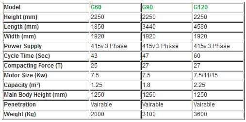 The Gradeall range of Static compactor systems are designed to meet Customer requirements and are available in 3 different Chassis, the table below compares specifications*: