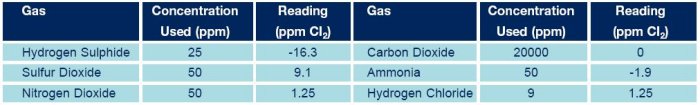 Cl2: calibratable up to 20 ppm Cl2 f.s.d.