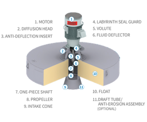The Aqua-Jet aerator is a mechanical direct-drive unit designed to provide optimum oxygen transfer in a variety of municipal and industrial wastewater applications. The performance of the Aqua-Jet aerator also provides the mixing necessary to uniformly disperse oxygen and organic matter within the microbial population. The robust design and use of the highest quality materials have also made the Aqua-Jet the most trusted aerator in the industry, outlasting other aerators 2 to 1.