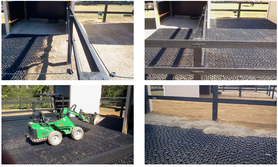 Rigid equestrian surface reinforcement & efficient drainage, for stables, training yards, arenas and tracks using the Atlantis Gravel Cell. Create a rigid and easy surface, ideal for the long-term stabilization of training yards, stables, and tracks with the Atlantis STABLE GRID system. This innovative system is specifically designed to meet the demanding needs of equestrian and livestock facilities, ensuring that your prized animals have a stable and secure ground to stand and move on.