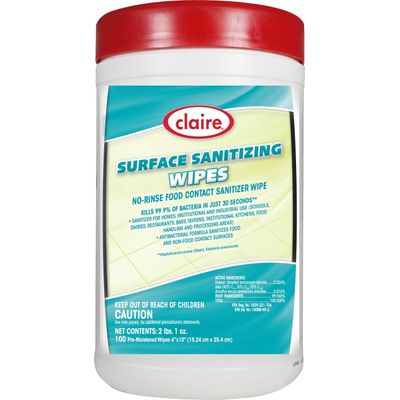 Antibacterial formula sanitizes food and non-food contact surfaces. This product is a non-woven, disposable wipe, pre-saturated with a versatile broad-spectrum sanitizer for homes, institutional and industrial use. For sanitizing - apply to a pre-cleaned surface. FOR SANITIZING HARD, NON-POROUS SURFACES IN THE FOLLOWING AREAS: Food handling and processing areas, health clubs, schools, dairies, restaurants, bars, institutional kitchens, veterinary clinics, animal hospitals, correctional facilities, beauty salons, daycare centers, etc.