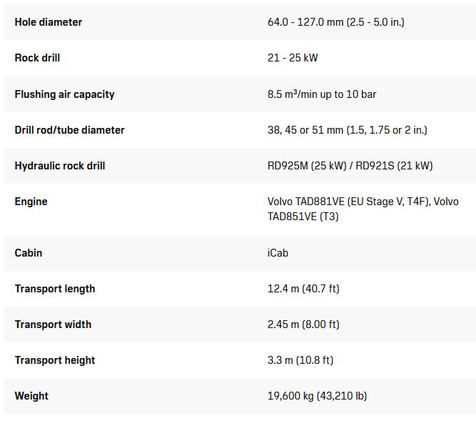 Benefit from the versatility provided by Ranger™ DX910i’s expanded rock drill selection (27 - 30kW). Leverage the drill rig across a number of applications thanks to the available rock drill options, including a new long-piston RD930C rock drill designed for efficient drilling of larger hole sizes.