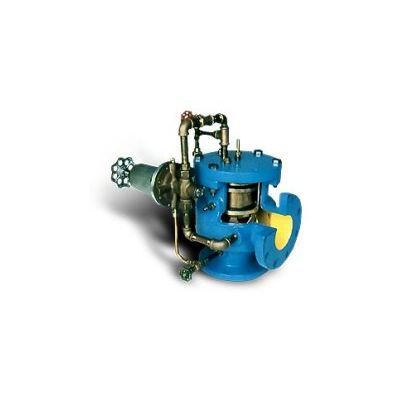 GA Industries pilot-operated surge relief valves utilize the Golden-Anderson® differential piston main valve operated by a super-sensitive pilot system. These valves are available in sizes 2-1/2` to 24` (65mm to 600mm) and furnished standard ANSI Class 125 or 250 flanged cast iron body, bronze vee-port trim and Buna-N renewable seat for pressures to 400 PSI (2,756 KPa). Consult factory or submit Surge Checklist for sizing assistance. GA Industries pilot-operated surge relief valves are available in alternate materials for higher pressures and/or with ISO/EN flanges. The basic surge relief valve can be supplied with optional features and accessories to accommodate the requirements of almost any system.