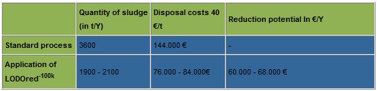 Reduction of sludge quantities of up to 45% and considerable decrease of attended sludge disposal costs. Example : Wastewater treatment system (30.000 PE)
