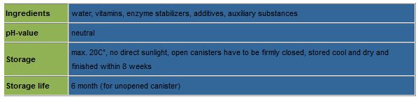 The product is design to induce a change in biomass metebolism and in particular in the balance catabolism/anabolism. Organic matter degradation (catabolism) is promoted through a mixture of vitamins and enzyme stabilisers while new cell biosynthesis (anabolism) is slowed down by means of other substances.