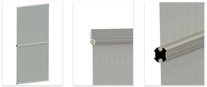 The Keder Double Bar Curtain is a center drive roll bar that has a welded or sewn cord that slides into a corresponding channel at the top, the roll bar, and the bottom for easy and efficient fabric attachment.