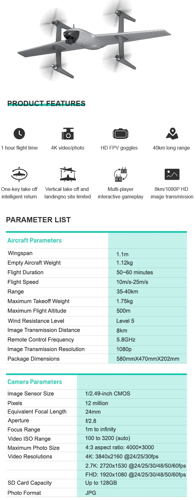 Swan Voyager is the first aerial photography drone that applies 3-axis gimbal stabilization technology to ultra-small consumer-grade vertical take-off and landing fixed-wing drones. Swan Voyager supports 4K video recording, has 8km transmission range and 1 hourflight time. With the Voyager, users can create whatever they want and bid farewell to the limitations of short transmission range and battery anxiety. They can enter areas that are inaccessible or difficult for humans, explore unknown areas, enabling us to discover new perspectives and experiences.