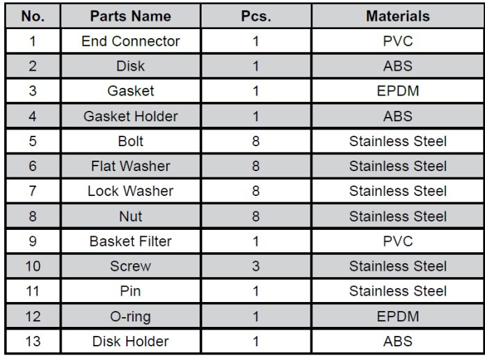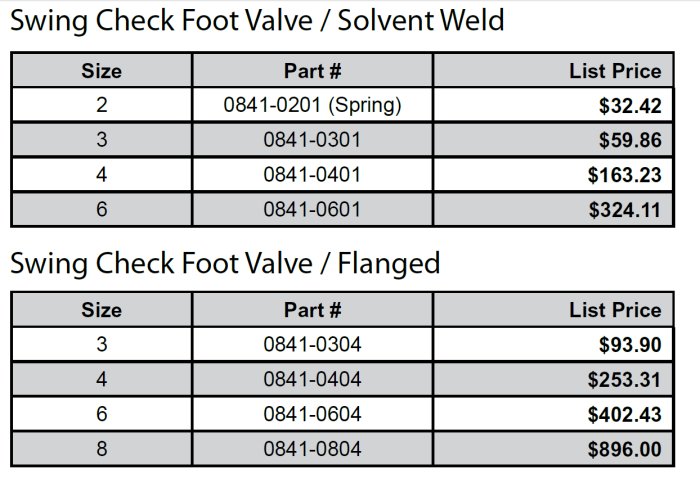 Reinforced Basket Strainer on Foot Valves. Vertical or Horizontal Mount. Standard Connection is IPS Solvent Weld. Optional Connections on Foot Valves include: 45° Solvent Weld, Flanged, 45° Flanged.