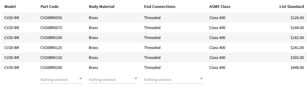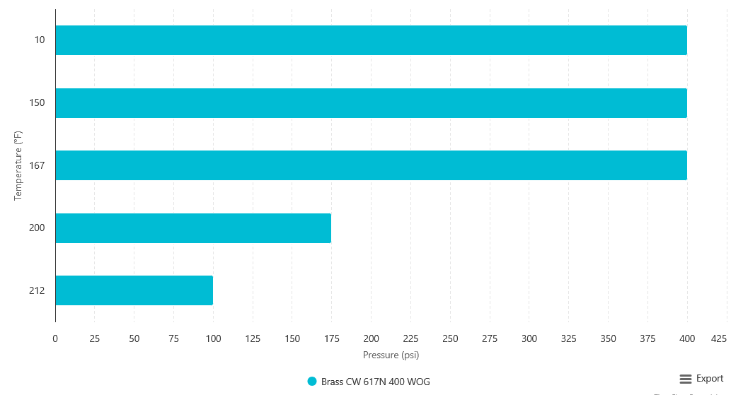 - 1/4 ~ 1 1/2 - WOG (Non-shock): 400 PSI @ 100 °F