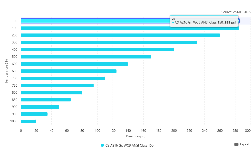 - ASME Rating: Class 150