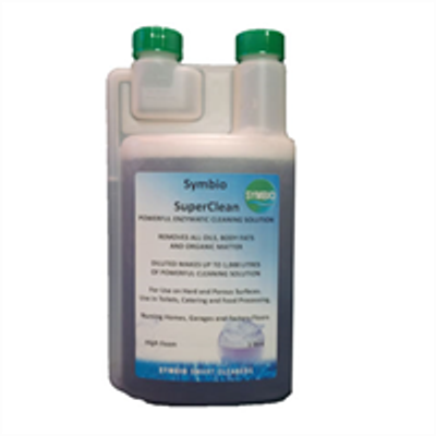 Symbio SuperClean’s enzymatic activity breaks down the organic matter on which algae, moulds and biofilms grow. Will not harm plants at recommended dilution rates. 1 litre makes between 100 – 1,000 litres of cleaning solution