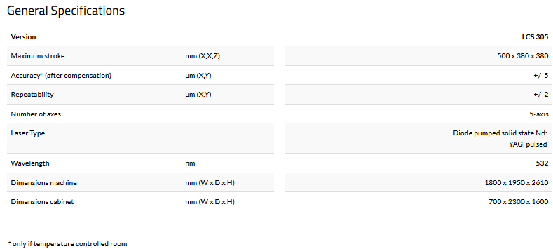 Synova - Model LCS 305 -Laser Metal Cutting System
