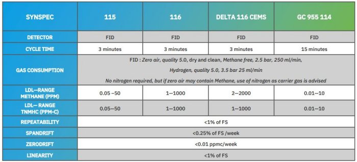 Synspec produces 5 different versions of Methane/TNMHC analysers: