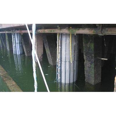 Synthetex’s high-strength HYDROTEX Pile Guards Fabric Formed Concrete pile jacket repair systems are available in lengths and diameters designed to armor your steel, concrete or timber piles with custom solutions and not restricted to the standard diameters.  Fabric formed pile jackets are a proven economical solution for the pile repair and protection.