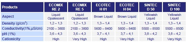 In SERVYECO we have developed 3 types of synthetic coagulants: ECOMIX, ECOTEC and SINTEC. All this series of coagulants aims to reduce the volume of sludge, reduce the use of neutralizing products and not increase the conductivity of the effluent. The ECOMIX, ECOTEC and SINTEC series are proposed for both sedimentation and flotation processes. In the case of having a high content of suspended solids in the residual water or values of turbidity below the required it is advisable to opt for SINTEC or ECOTEC.