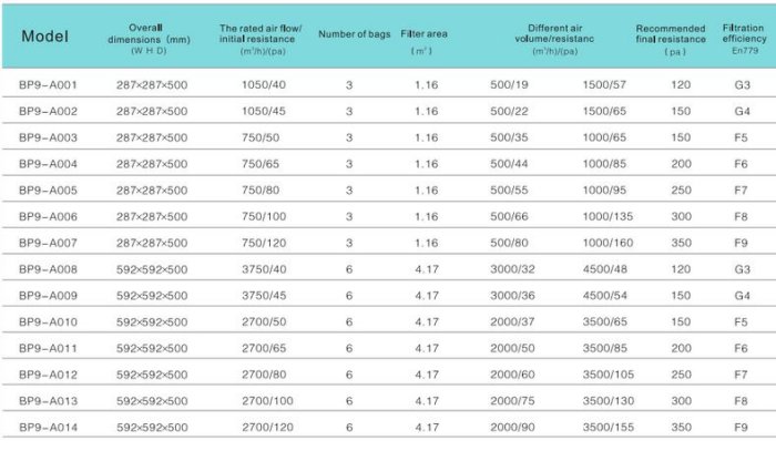 Bacclean - Model BP9 -Synthetic Fiber Pocket Filter