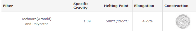 Ultima-Tech Plus rope is fabricated from 12-strand Technora core with polyester outer layer cover for added UV & abrasion resistance.