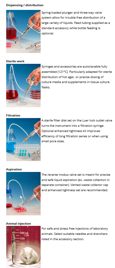 Syringes and accessories are autoclavable fully assembled 121°C / 250°F (without protection sleeve).
