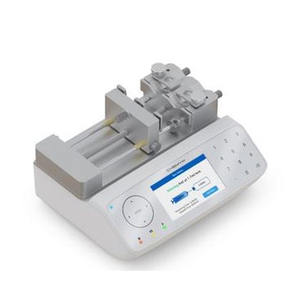 The Fusion 200X is a programmable, dual-channel infusion and withdrawal modular syringe pump. This advanced precision syringe pump features two syringes to infuse/withdraw simultaneously at pulseless, reproducible rates; a programmable multi-step mode that allows users to program complex multi-step flow rates; computer control with Lab view and other programs; an add-on 4-syringe push and pull rack for four large syringes; an add-on 11-syringe push and pull rack to increase the syringe number up to eleven. The Fusion 200X double syringe pump has a full-glass touch screen that is chemical resistant and easy to clean for lab environments of all types. This automated syringe pump is designed for precision dispensing/dilution, organ/tissue perfusion, and microfluidics, electrospinning, aerosols, pharmaceuticals, and bioscience research.