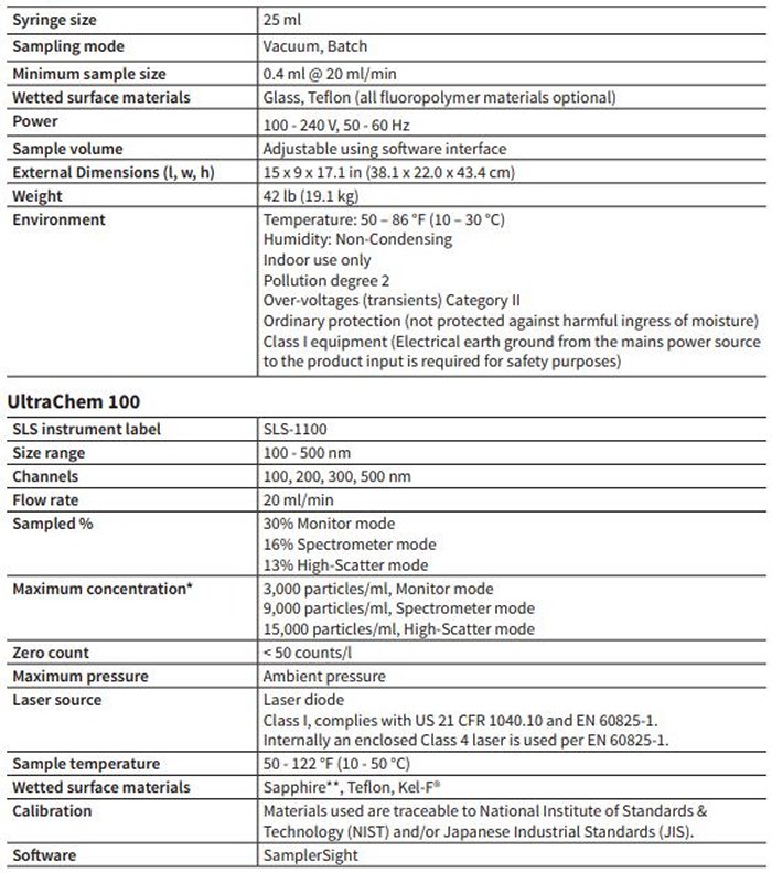The SLS Syringe Sampling System is ideal for applications where precise, small-volume sampling is needed. The system consists of a syringe sampler for either corrosive or non-corrosive liquids, a particle counter for different sizing sensitivities, and software. A convenient naming system identifies the particle counter installed inside the instrument.