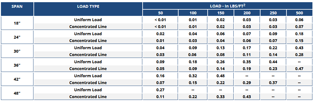 Number of Bars: 8. Bar Depth: 1". Open Area: 33%. Max Width: 5`. Load Bar Centers: 1.5". Approximate Weight: 2.25 lbs/ft2. Cross Bar Spacing: 6". Engineering Properties Per Foot of Width: A = 2.34 in2, I = 0.27 in4, ST = 0.78 in3, SB = 0.42 in3.
