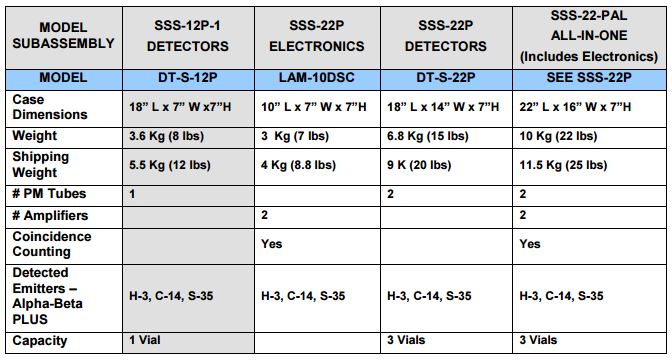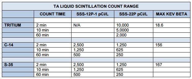 - The SSS-22P also measures Tritium & Exceptional for measuring low levels of Tritium, C-14, & S-35.
